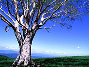一番最初の写真を撮影したのは1998年4月30日。麓では桜も終わってしまっていますが、ここ「乙女が原」(実際の名前は違います)では、まだ桜もつぼみです。この場所は牧場なので、6月頃から牛の放牧が始まります。そうするとこの木の近くにも近寄れない状態になります。標高はだいたい1800mくらいで、もちろん日が暮れたら真っ暗闇になるので太陽が沈むまでには下山した方が無難です。