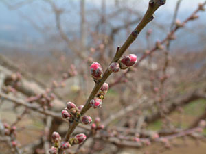 こちらも数日で満開となるでしょう。 新府桃源郷 JR新府駅周辺の桃畑は開花があと1週間かかりそうです、