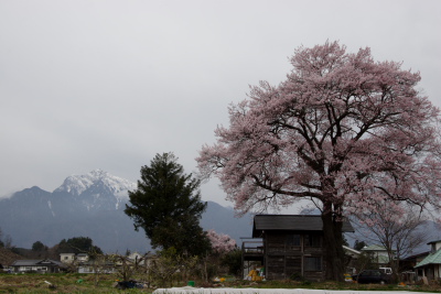 | こちらの桜は、神代桜のある実相寺から西方向へ2分くらい歩いた場所にある桜です。高さがとても高く目を引きます。この桜の近くには駐車スペースがないので神代桜近くの駐車場に車を停めて歩いていくのがおすすめです。 | |