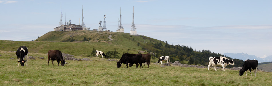 美ヶ原ビーナスラインを八島ヶ原湿原から走ること約23km、美ヶ原にある山本小屋に到着する。ビーナスラインの終点である美ヶ原高原美術館まで行ってしまうと、美ヶ原らしい景色は見ることが出来ません。これは多くのガイドブックではなかなか語られていないことですが、本当に美ヶ原らしい景色を見るのには、ビーナスラインを走って行くと美ヶ原を堪能するのにはかなりの苦労を要するという事実が抜け落ちているからです。 美ヶ原=高原の風景+牛+美しの塔というイメージですが、何の基礎知識もなく美ヶ原に行くと、大抵はビーナスラインをそのまま美術館まで行ってしまうので、そんな景色に出会えないという間違いからはじまるのでしょう。